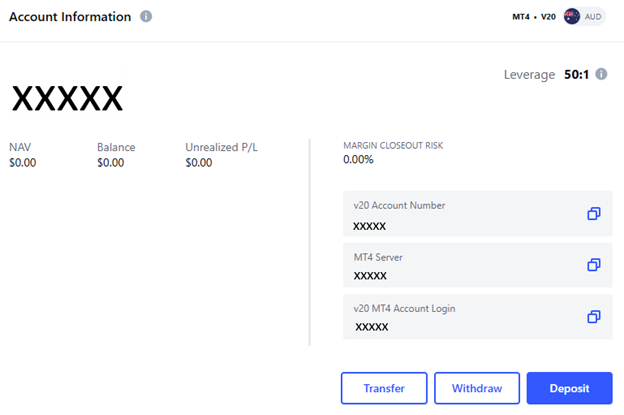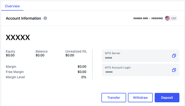 Click on the MT4 or OANDA One sub-account to view the Account Details. You’ll find the find the server and account login, as shown in the following images: