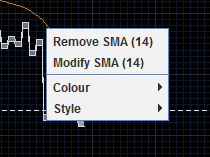 如要从图表中删除叠加或指标,请点击它们并从出现的弹出菜单中选择Remove(删除):