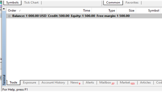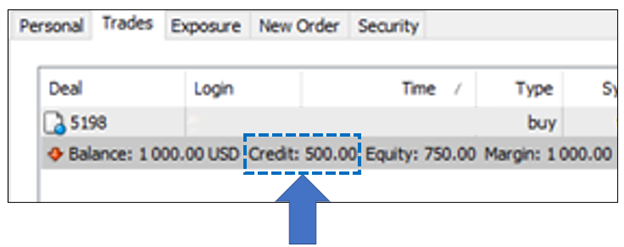 Pada platform MT5, anda boleh melihat bonus yang digunakan sebagai kredit pada platform MT5.