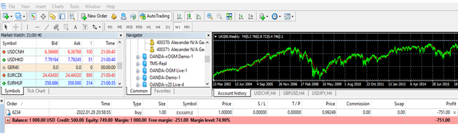 Selepas itu, jika Kerugian Tidak Realisasi pada posisi terbuka = -751 USD