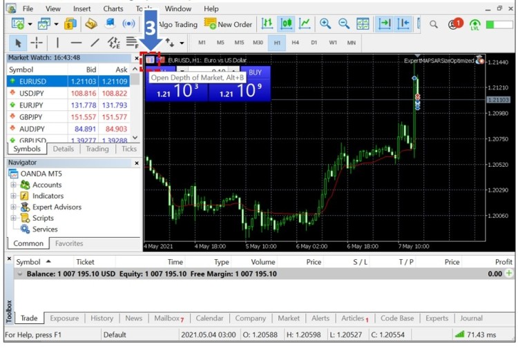 Nhấp vào Depth Of Market (Độ sâu Thị trường).