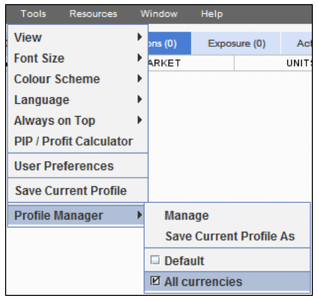 You may want to set up various profiles, each with unique settings. By switching from one profile to the other, you can quickly optimize your OANDA interface for different trading strategies, currencies, or sub-accounts. For example, you may want to view simple moving averages while trading USD/CAD, and pivot points while trading NZD/USD.