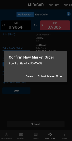 Une fenêtre de vérification s'affiche pour vous permettre de confirmer le nouvel ordre de marché. Cliquez sur Submit Market Order (Envoyer l'ordre de marché).