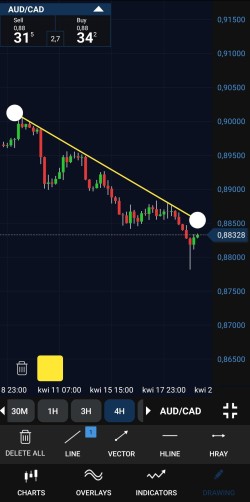 Le graphique en chandeliers montre l'historique des prix moyens. Vous pouvez ajouter un graphique d'achat ou de vente si nécessaire.