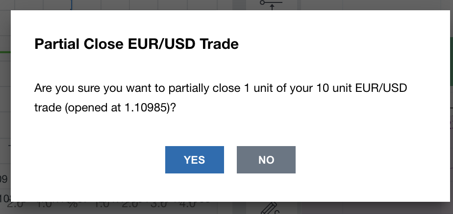 Une fenêtre de vérification s'affiche pour vous permettre de confirmer la clôture de la position. Cliquez sur YES (OUI) pour confirmer la modification.