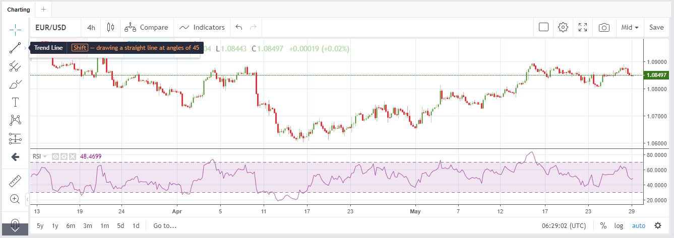 Sélectionnez l'outil de ligne souhaité (par exemple, Trend Line (Ligne de tendance), Horizontal Line (Ligne horizontale) ou Info Line (Ligne d'information)).