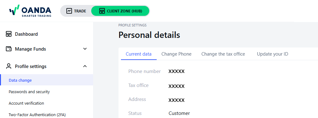 In the HUB, you can see your current personal details and update your ID, change your phone number or tax office (available only to clients from Poland). To do that, follow these steps: