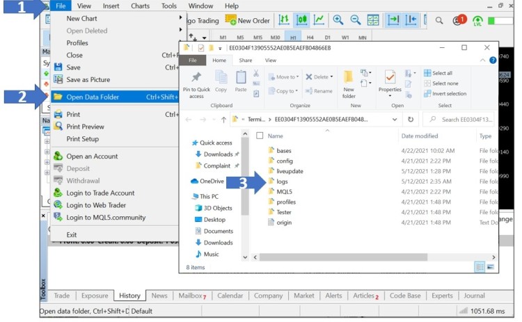 In the event of a technical issue on your platform that cannot be resolved, send the MT5 platform log to us for further investigation. To retrieve and send us the log, follow these steps: