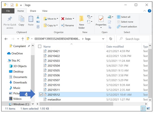 The log file names are dates. Locate the required log file (based on the date on which the issue occured).