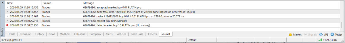 The MT5 platform may display the trading has been disabled - disabled on server error message in the Journal tab of the Toolbox section.