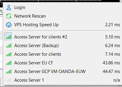 Rescan the connections by clicking on the connection speed icon and check if you can connect to alternative access servers.