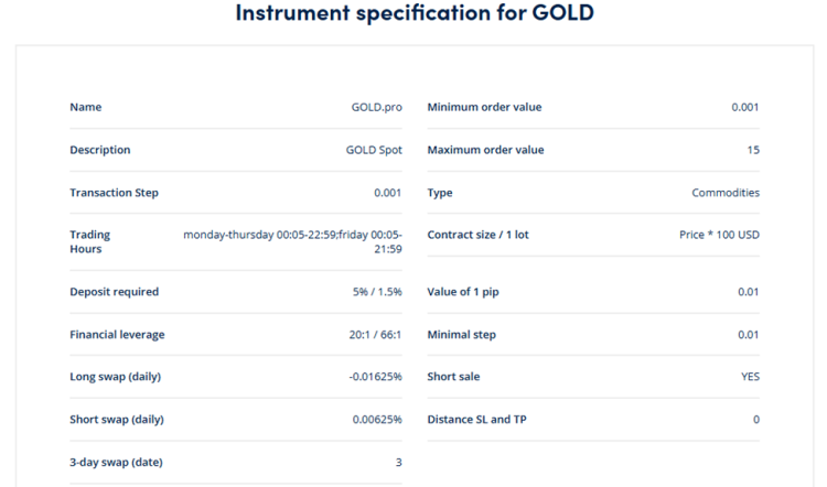 Wielkość kontraktu dla kontraktu Gold CFD = 1 lot = 100 uncji złota