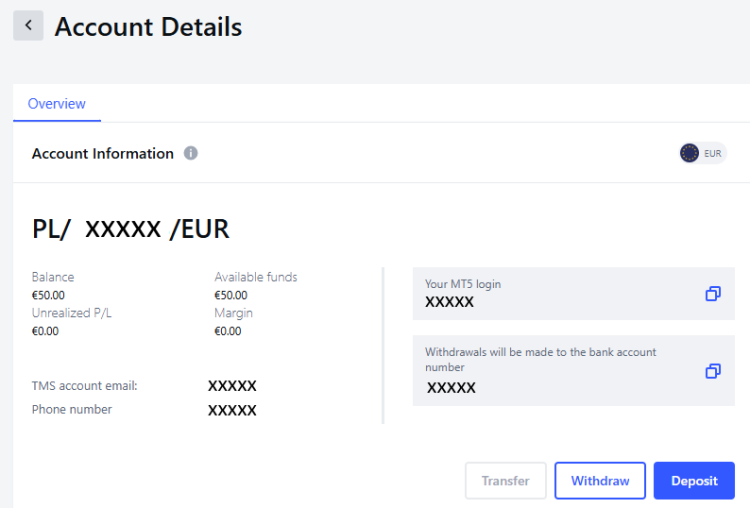 Login MT5 można znaleźć w polu Your MT5 login (Twój login MT5).