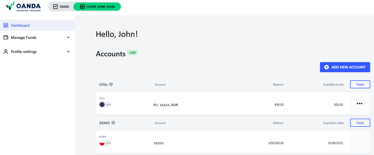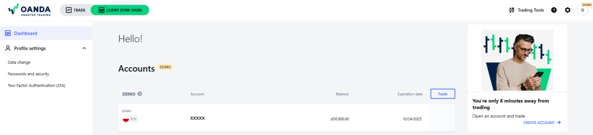 HUB to kompleksowy portal służący do zarządzania Twoim kontem OANDA TMS. Dostęp do portalu HUB można uzyskać z dowolnego urządzenia, w tym telefonu komórkowego.