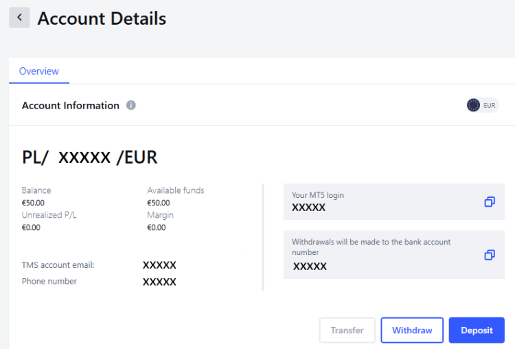 Wyświetlić szczegóły subkonta, w tym swój login MT5, klikając numer subkonta