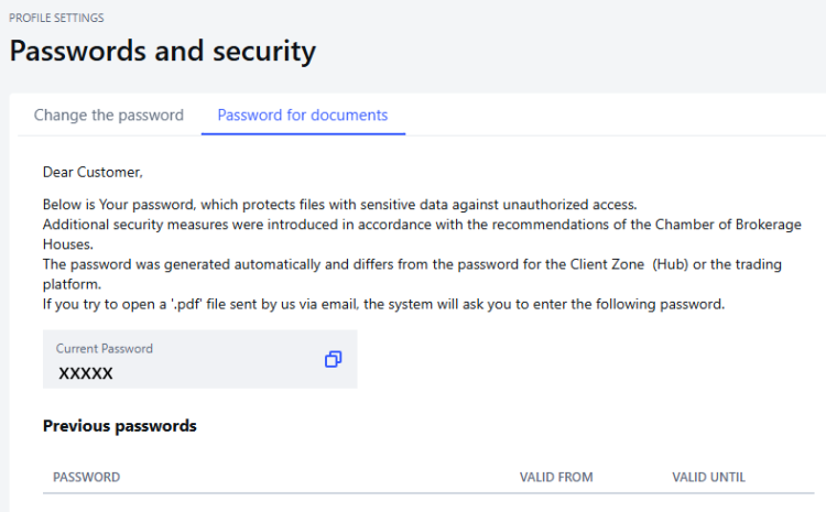 W zakładce Password for documents (Hasło do dokumentów) sprawdzić hasło do dokumentów.