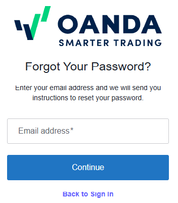 Wprowadź adres e-mail powiązany z Twoim kontem OANDA TMS i kliknij CONTINUE (KONTYNUUJ)