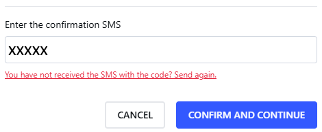Wprowadź kod potwierdzenia z SMS wysłany na zarejestrowany numer telefonu. Następnie kliknij CONFIRM AND CONTINUE (POTWIERDŹ I KONTYNUUJ).