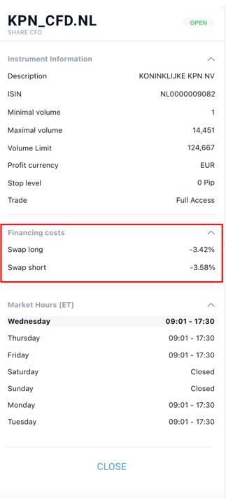Thus, a financing charge of 10.68 EUR, converted to your account home currency, is levied on your account. Your account will be charged every day the position is held beyond 5pm ET.
