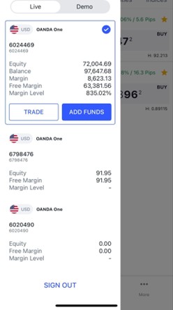 How to trade on the OANDA One sub-accounts using the OANDA mobile app