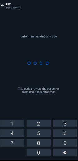 Every time you access the OTP generator, you must enter a validation code. To set the validation code, follow these steps: