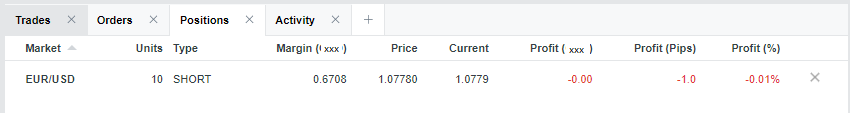 Profit = The profit for the trade shown in the currency of the selected account