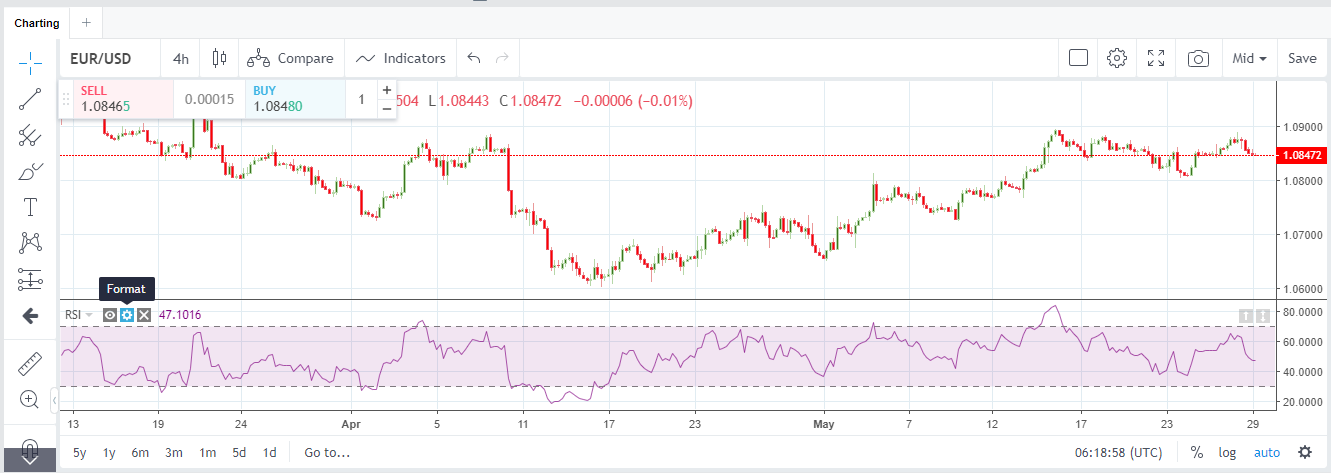 On the added indicator, click on the gear icon, next to the indicator’s name.